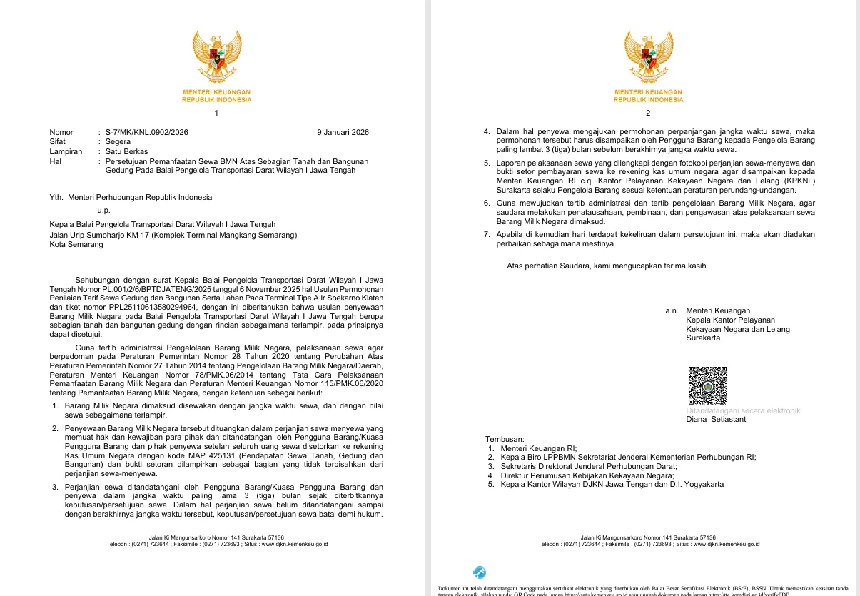 Pemerintah melalui Kementerian Keuangan memberikan persetujuan pemanfaatan berupa penyewaan sebagian...